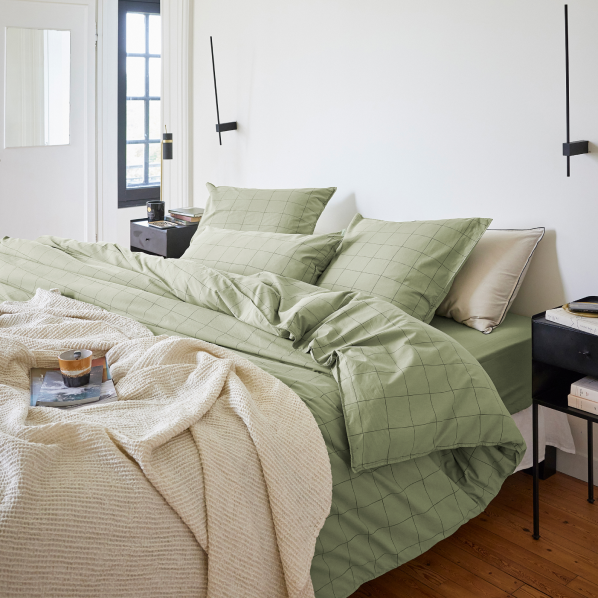 Notre coup de cœur de la rentrée : Impression graphique. De fines lignes viennent twister l'uni et sublimer votre lit avec une touche moderne.